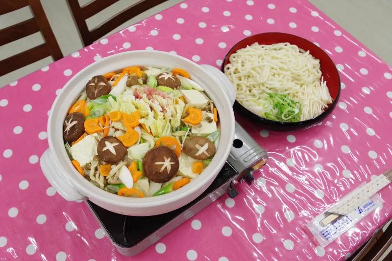 ◆ミルフィーユ鍋はご予約グループ毎に鍋・人数分の〆用うどんが付きます。人数により鍋の数が変わる場合があります。鍋は船内で、お客様自身でお取り分けいただきます。